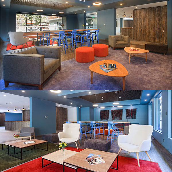 Our common areas are ideal for work, connected to our Wi-Fi network, with comfortable sofas and a climate-controlled environment. They are also perfect for business meetings.